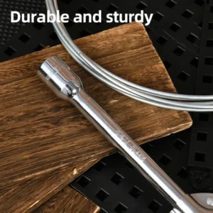 Clé en croix DELI 16″ en acier Cr-V, finie chromée miroir, adaptée aux écrous de roues 17/19/21/23 mm. Fiable, robuste et pratique pour l’automobile.