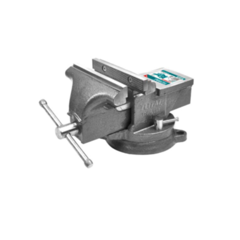 Étau d’établi 8″ TOTAL en fonte ductile. Force de serrage 2500 kg pour une stabilité maximale dans vos projets.