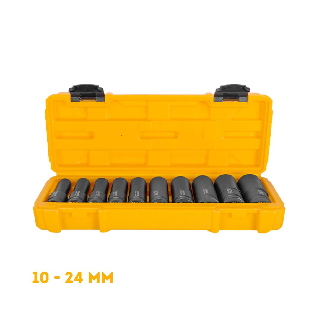 Jeu de 10 douilles longues DingQi 10–24 mm, acier résistant, idéal pour réparation automobile et clés à choc.