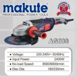 Meuleuse Makute 2400W, disque 230 mm, 6000 tr/min, puissante et fiable pour travaux intensifs.