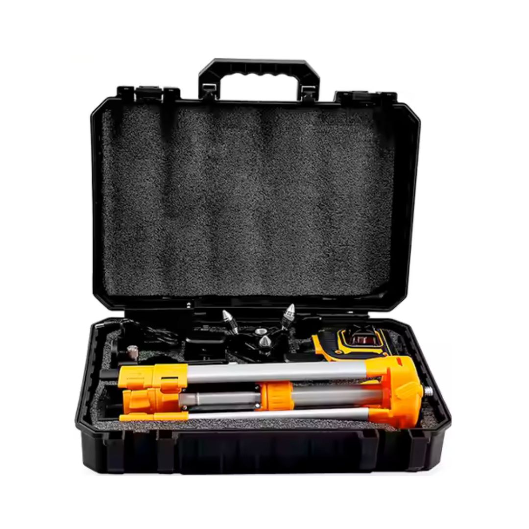 Niveau laser Dingqi 3D à 16 lignes avec nivellement automatique, précision ±1 mm à 7 m, angle de projection 360°, classe IP54. Idéal pour intérieur et extérieur.