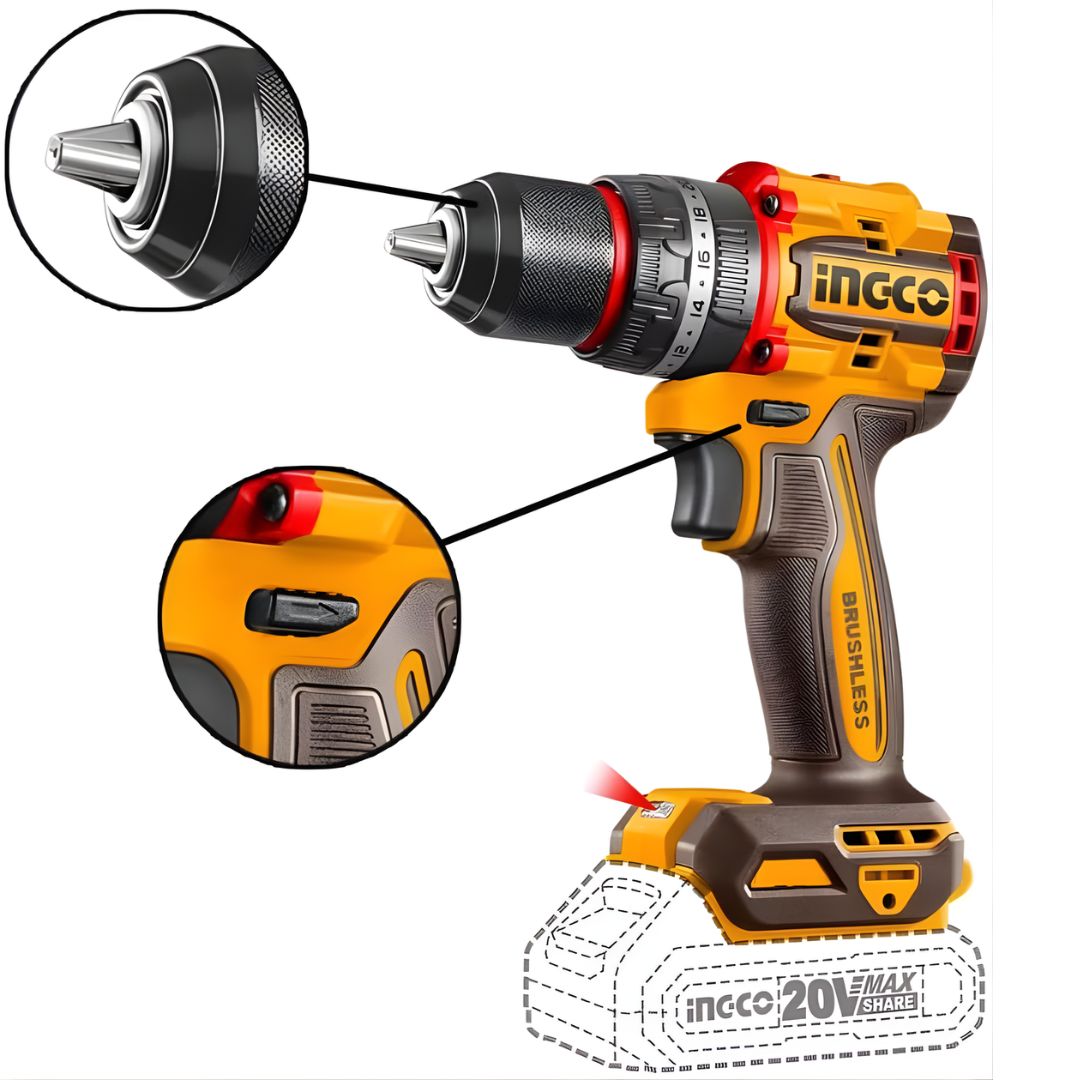 La perceuse à percussion sans fil 20V INGCO CIDLI20558 allie puissance, précision et mobilité. Son moteur brushless de 20V offre une performance élevée et une longue durée de vie, même en usage intensif.