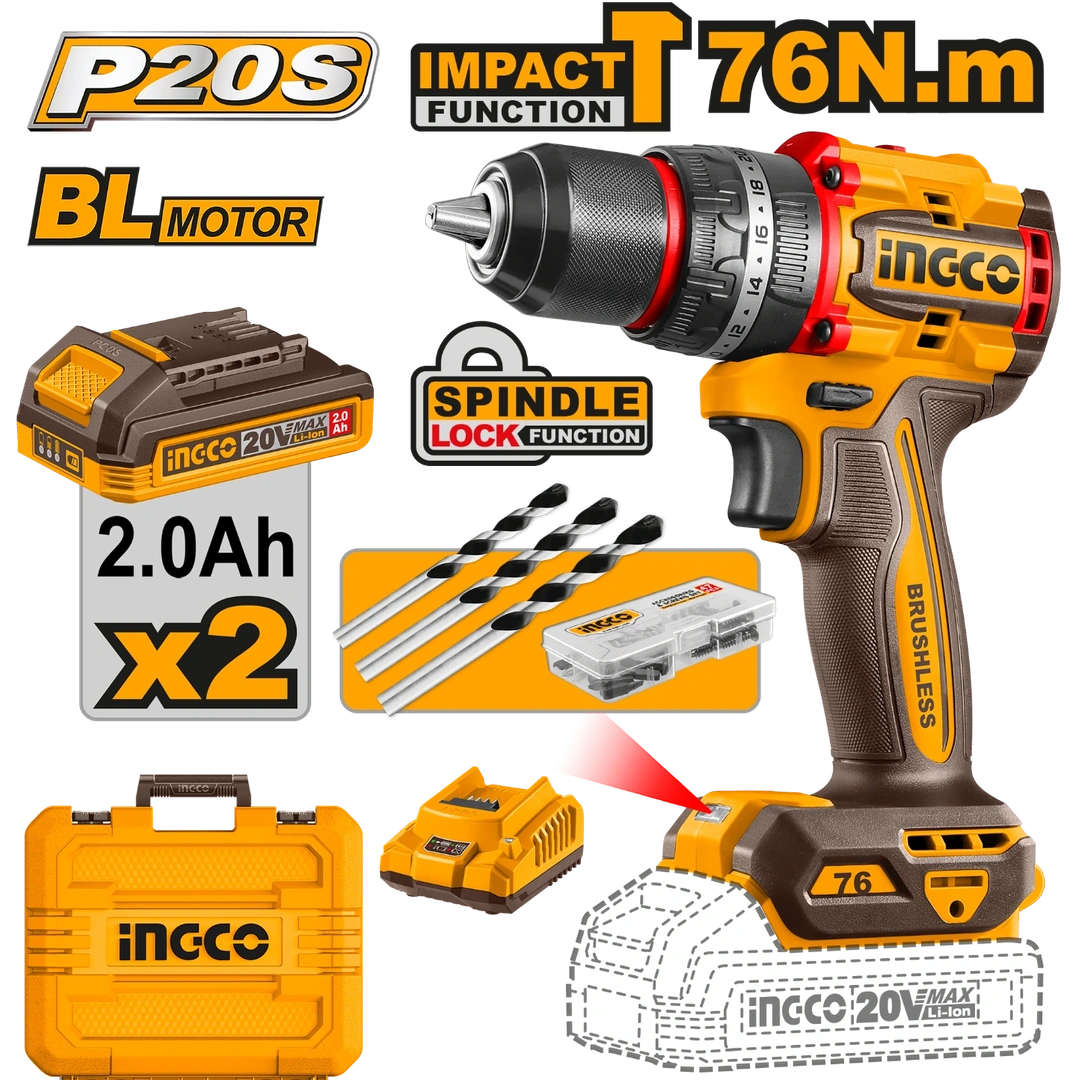 Perceuse à percussion sans fil INGCO 20V CIDLI20768