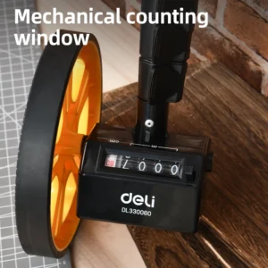 Roues de mesure de distance mécaniques 150 mm DELI – Précision ±0,5 %, division 0,1 mm, roue antidérapante.