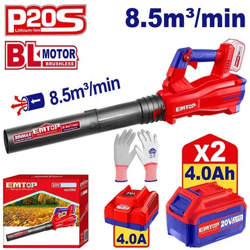 Le souffleur sans fil ELAB204282 Emtop offre une grande puissance pour le nettoyage extérieur. Il utilise un moteur sans balais, ce qui lui donne plus d’efficacité et une longue durée de vie. Grâce à sa technologie moderne, l’utilisation reste simple et très confortable.