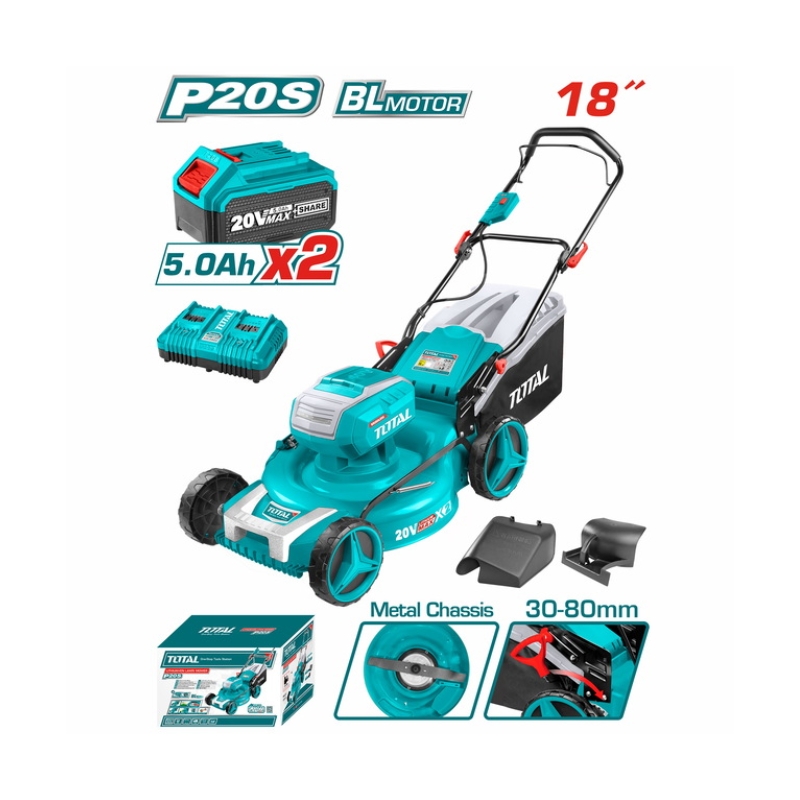 La tondeuse gazon 40V TLMLI20182 est conçue pour l’entretien efficace des pelouses de moyenne à grande surface. Grâce à son alimentation par deux batteries de 20 V, elle délivre une puissance totale de 40 V. Ainsi, elle assure une coupe régulière tout en éliminant les contraintes liées aux câbles. Par conséquent, le travail devient plus fluide et plus confortable.
