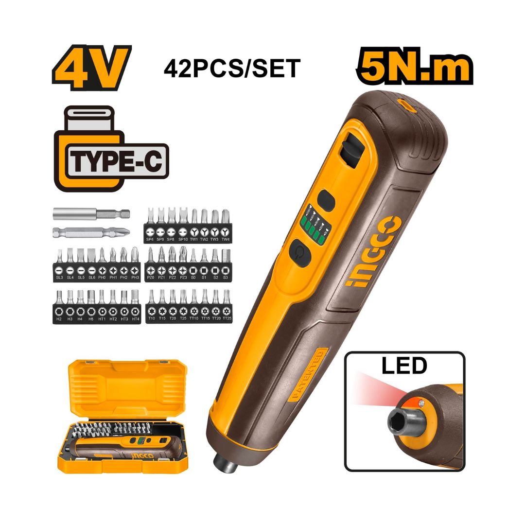 Tournevis sans fil 4V INGCO – 5N.m, USB-C et kit 40 pièces
